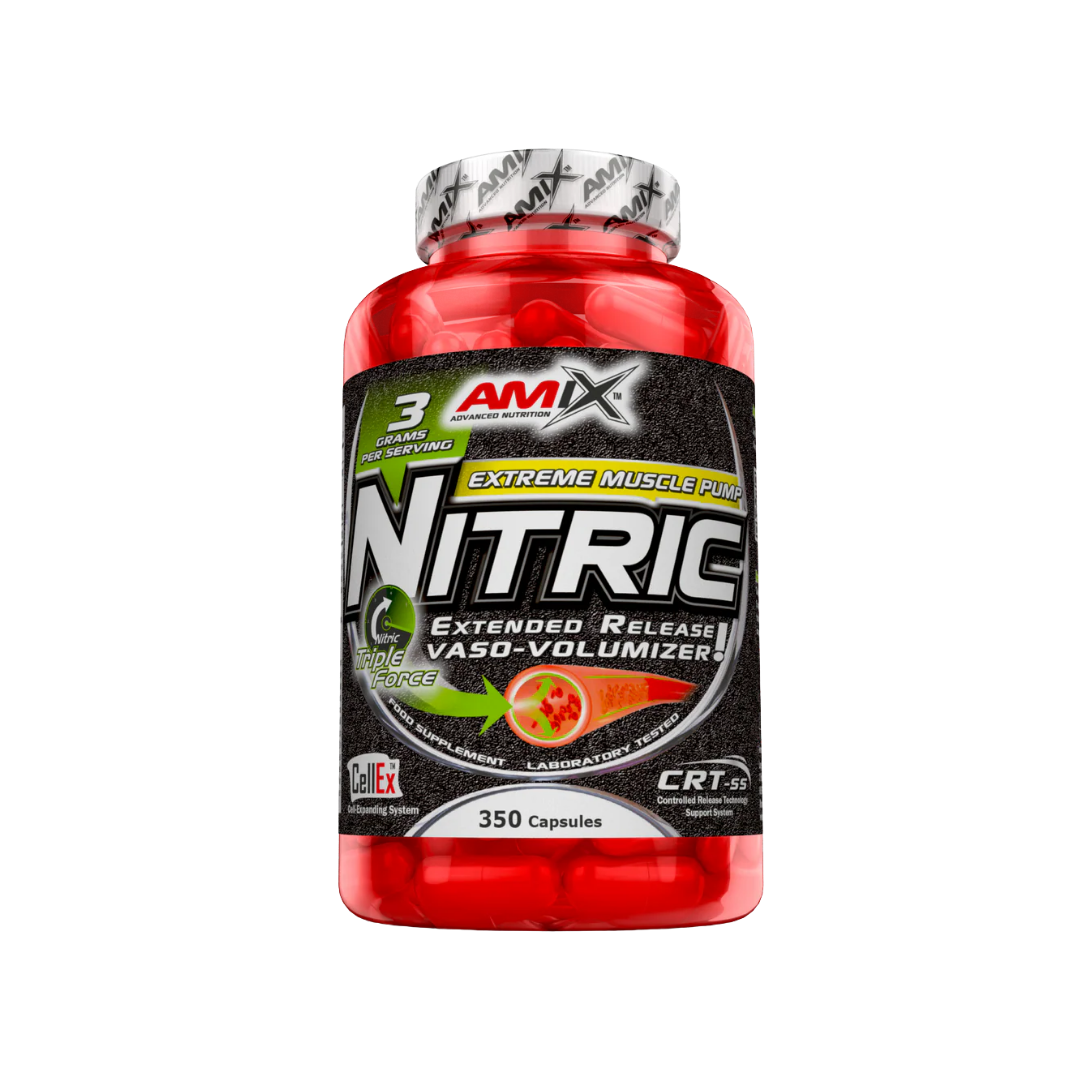Amix™ Nitric es un complemento alimenticio en cápsulas que combina tres formas de L-arginina con L-citrulina malato y betaína HCl. Está diseñado para personas activas que desean complementar su dieta con ingredientes que forman parte de la nutrición deportiva.