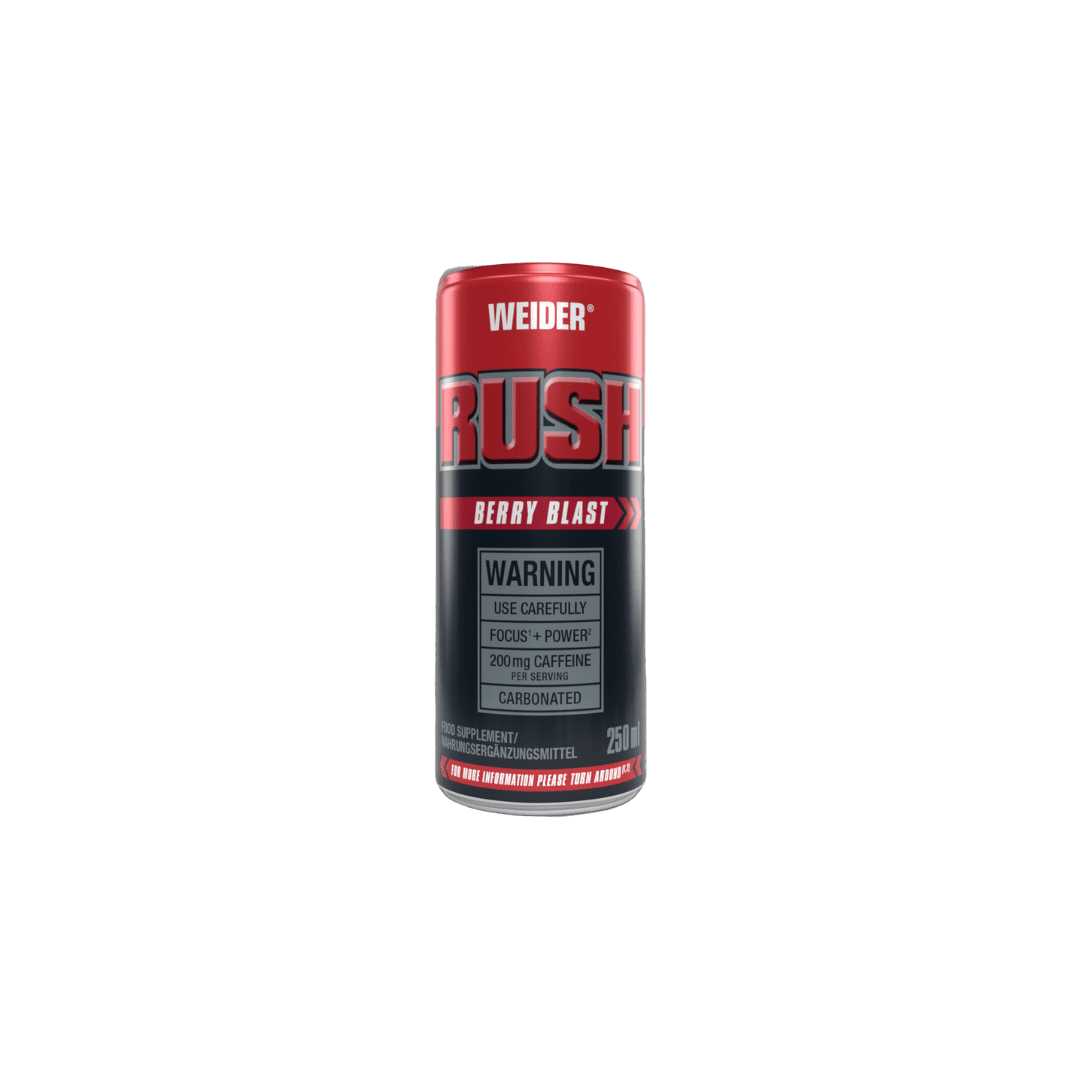 RUSH RTD de Weider es un complejo energético innovador en forma de bebida, diseñado para proporcionar energía y concentración durante los entrenamientos. Esta bebida lista para beber es una forma práctica y agradable de prepararte para tus sesiones de entrenamiento, incluso cuando te sientes con poca energía.